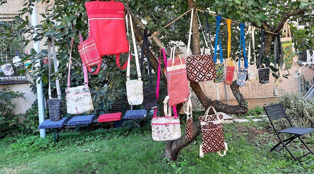 Alle Taschen und Rucksäcke stelle ich in vielen Stoffvariationen her. Als Stoffe verwende ich hochwertige Gobelinstoffe, Drucke und dicht gewebte Baumwoll-, bzw. wasserdichte Polyesterstoffe.